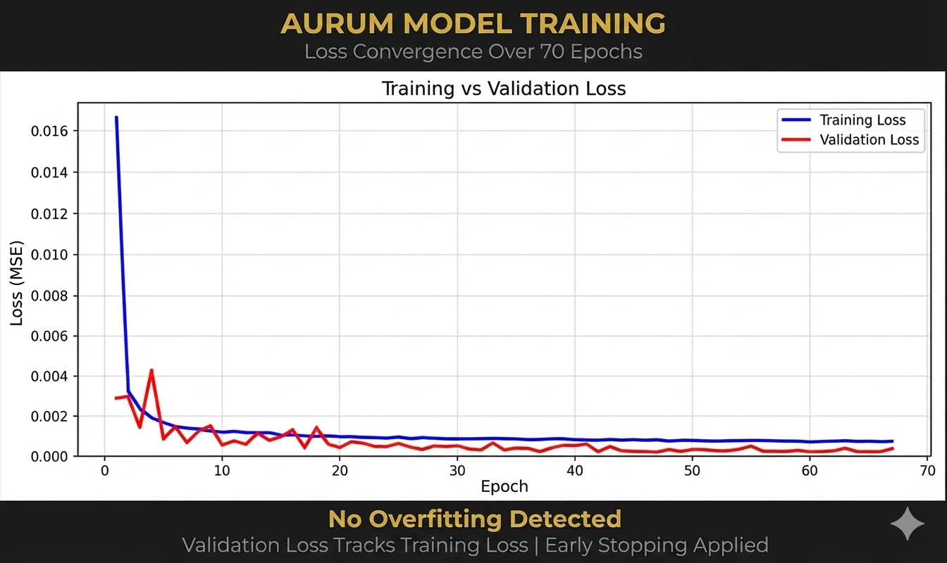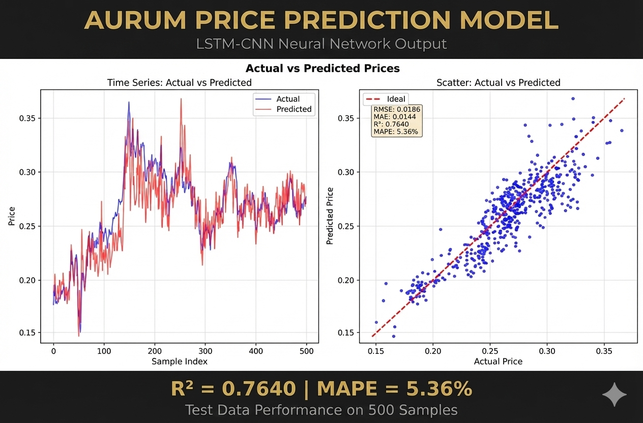 Dual neural network architecture trained on 59,000+ hours of gold price data.